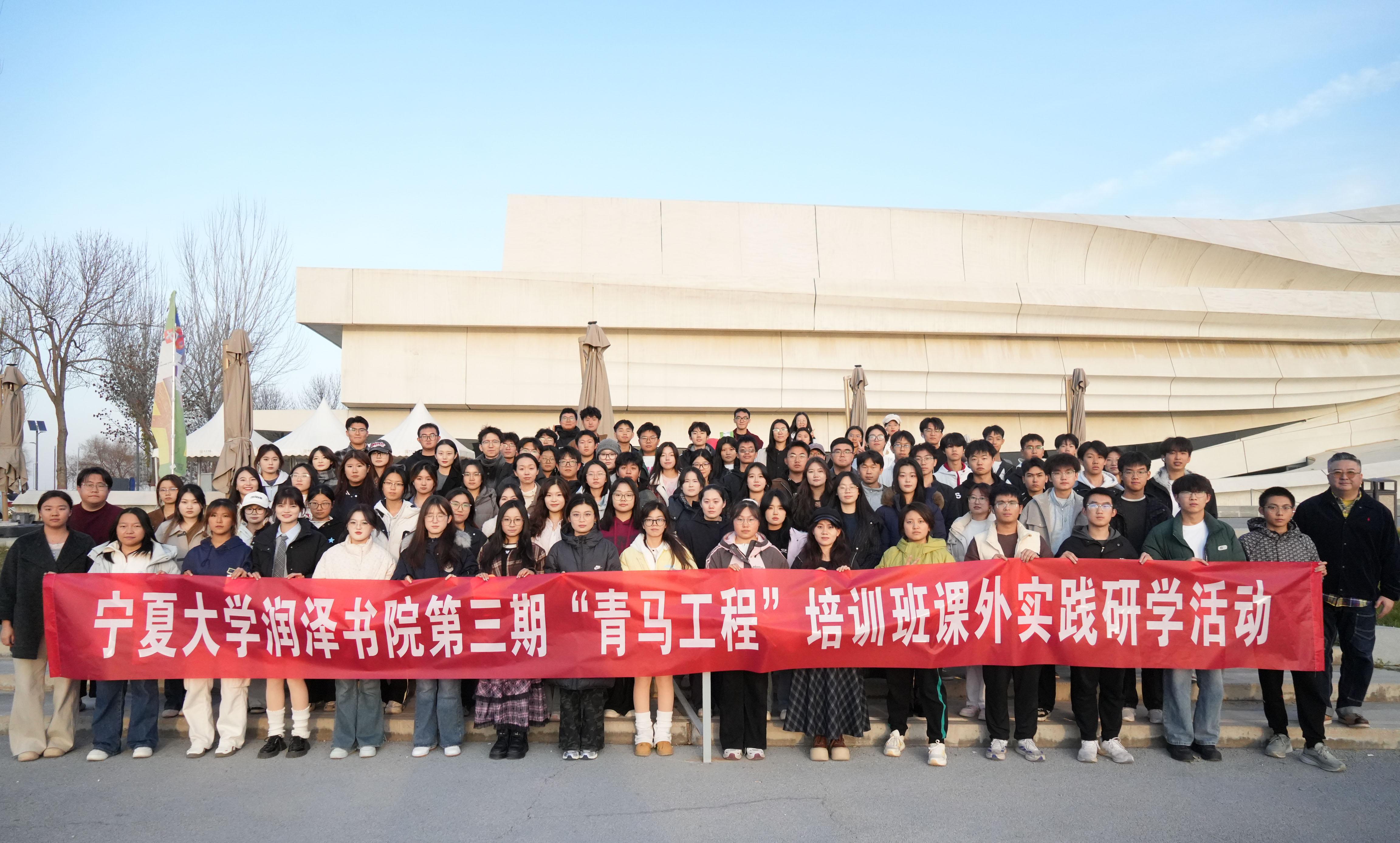 近日,宁夏大学润泽书院团委组织第三期“青马工程”培训班,大学生们在银川当代美术馆开展实践研学活动。
